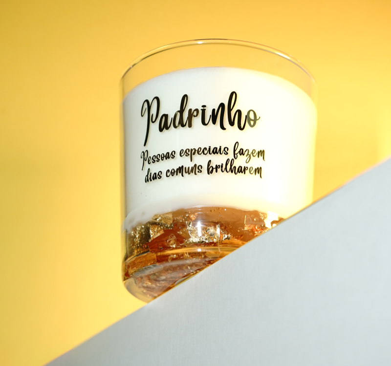 Feita artesanalmente com cera natural e decorada com delicadas folhas de ouro, cada vela simboliza a luz, a proteção e o valor de um padrinho na nossa vida.